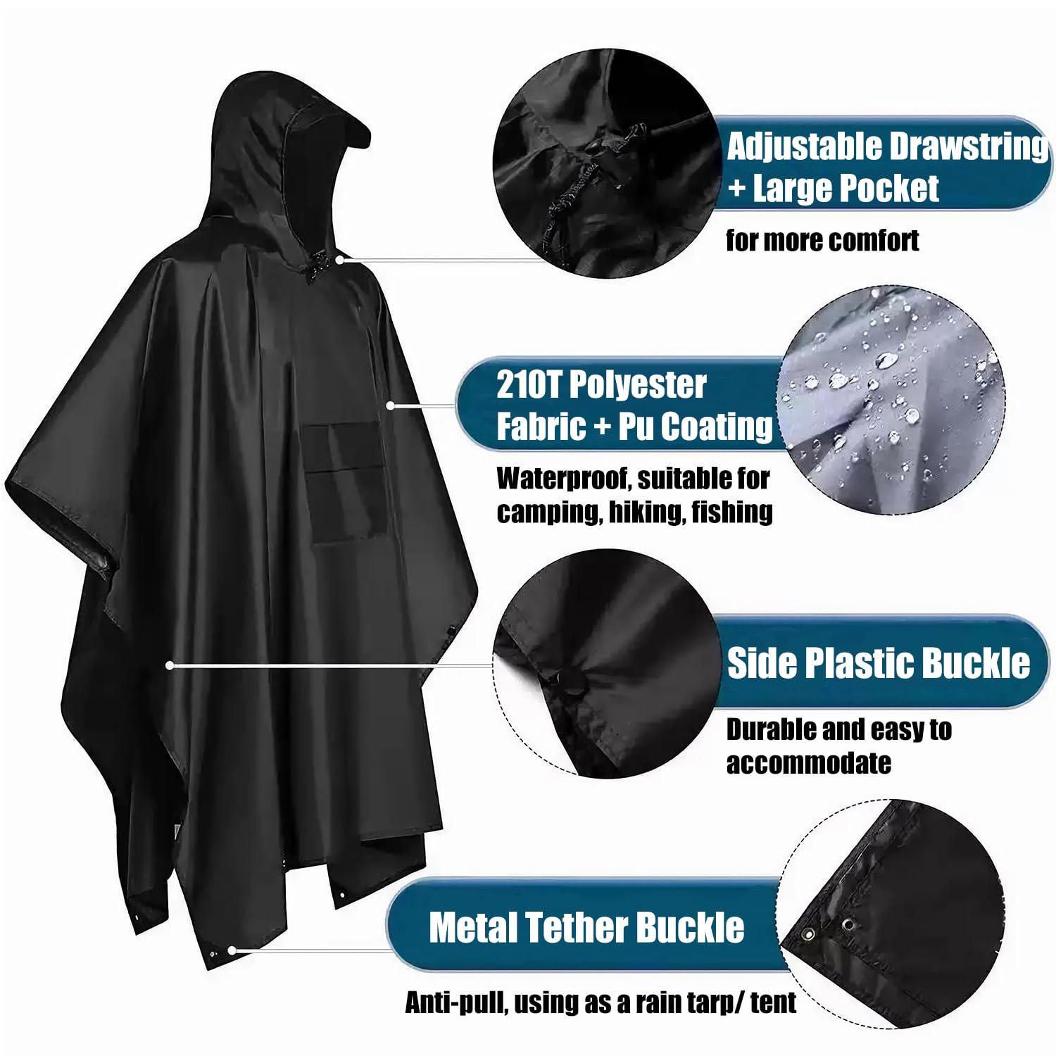 • La versátil capa de lluvia ofrece protección contra la lluvia con un cordón ajustable y un bolsillo grande para una comodidad óptima.