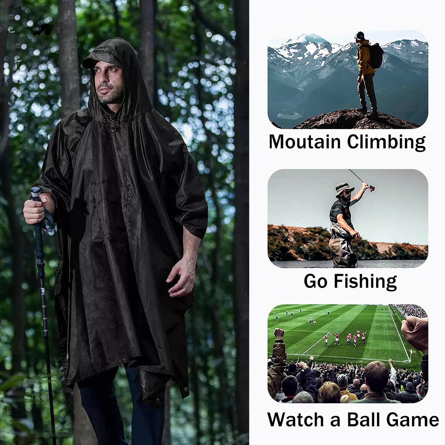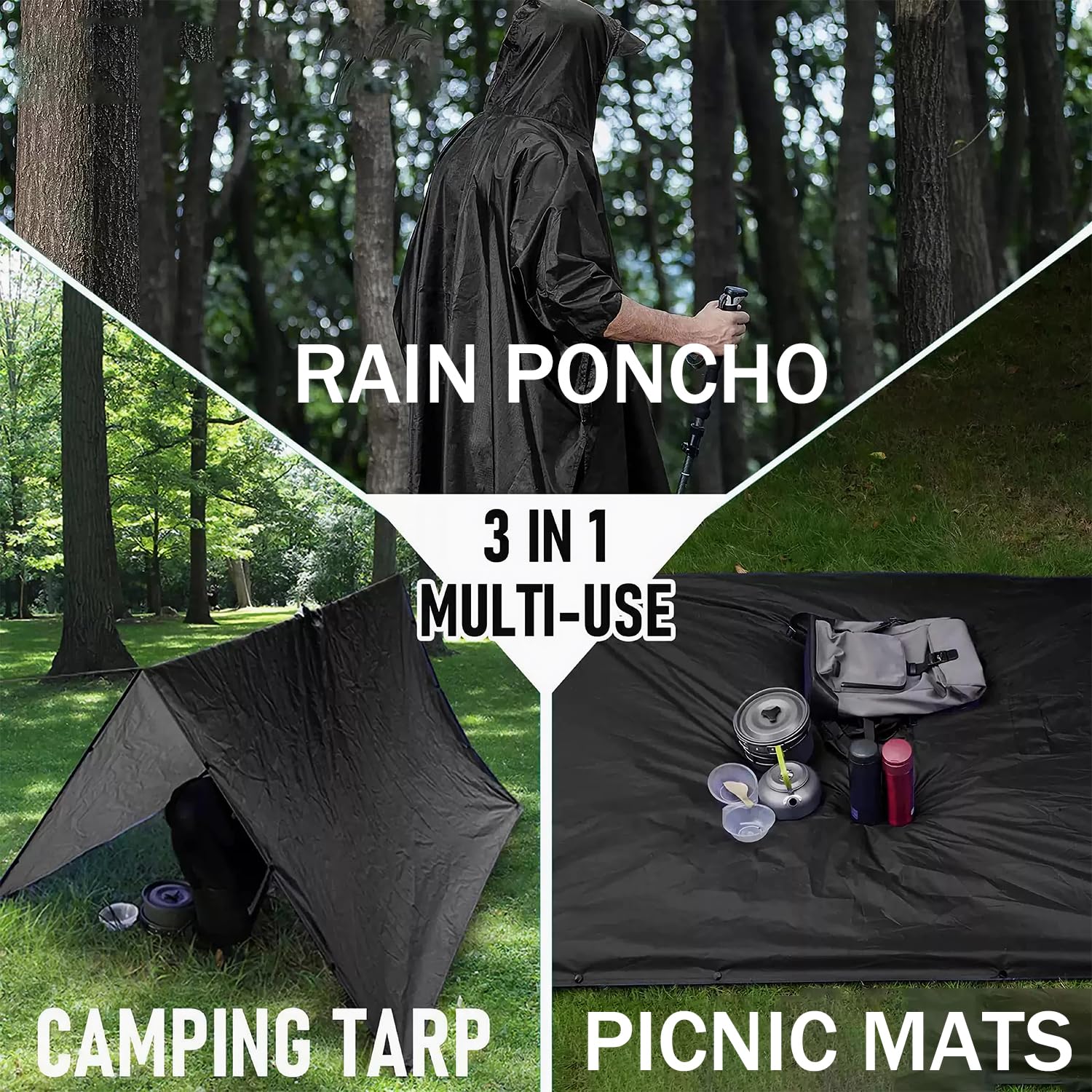 • Descubre la multifuncionalidad de este poncho de lluvia. Se puede utilizar manta de picnic, lona de lluvia y tienda de campaña. Los ganchos de la tienda no están incluidos.