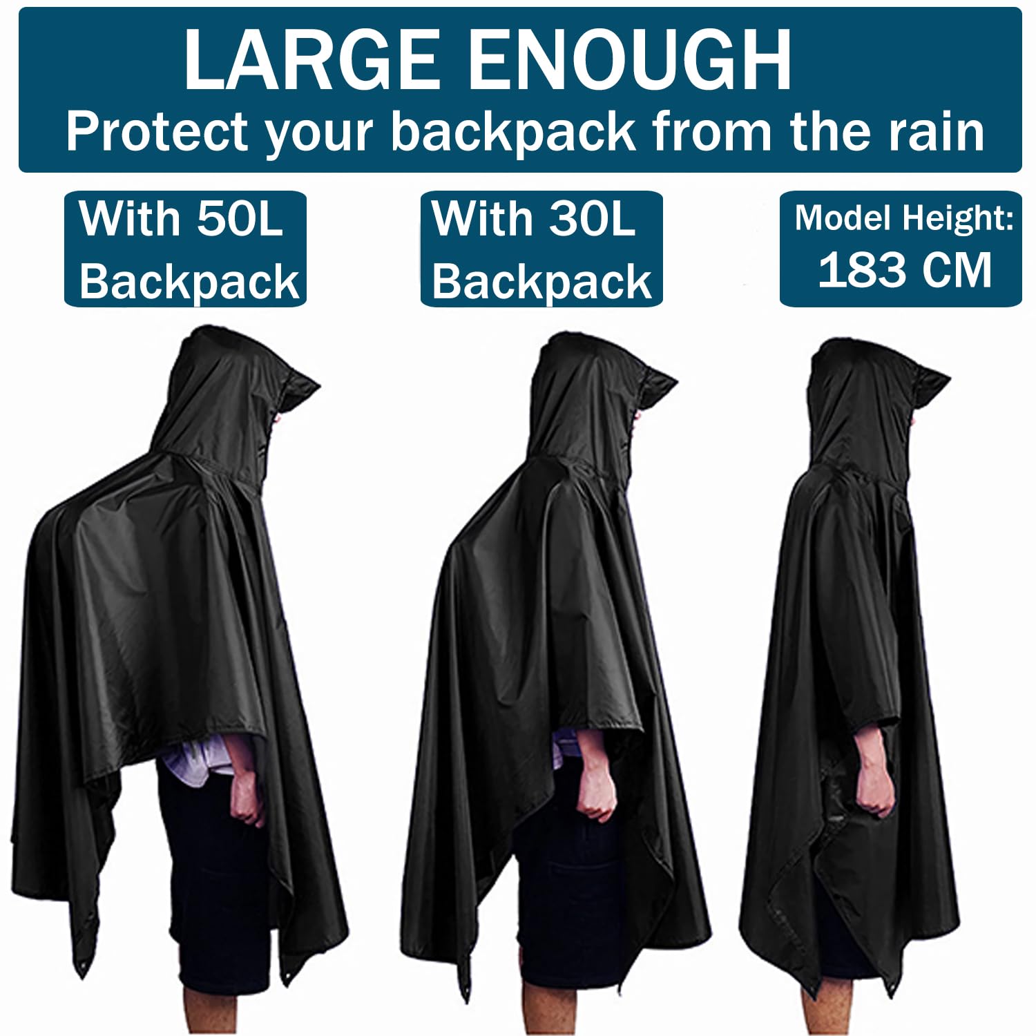 • Disfruta de la libertad de movimiento con el generoso tamaño del chubasquero. Bueno para actividades al aire libre y viajes.
