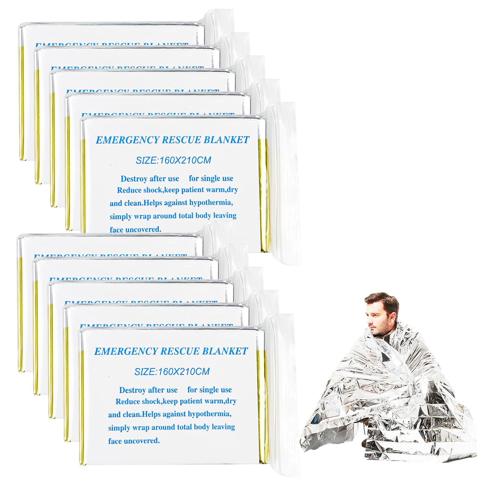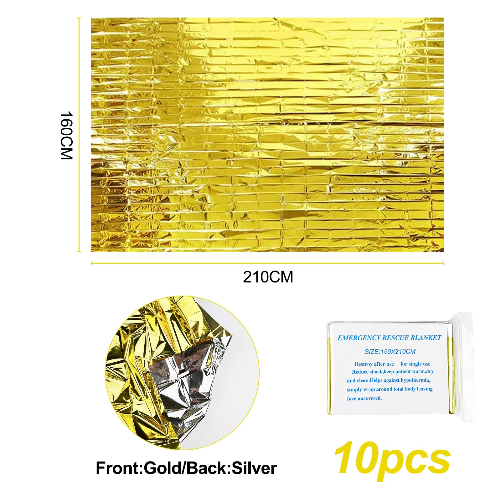 - 【Cantidad del Producto】Recibirás 10 piezas de mantas de emergencia. Debido al diseño compacto y al peso ligero de la manta de emergencia, se puede guardar fácilmente en bolsas de emergencia y botiquines de primeros auxilios para estar mejor preparado para las emergencias.