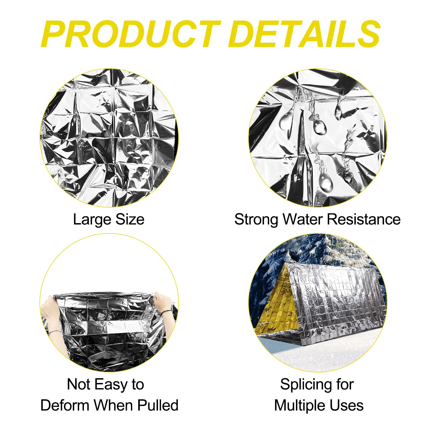 - 【Múltiples Usos Amplios】la manta de supervivencia se puede utilizar como funda de mochila, poncho, señal de emergencia, parasol, funda antipolvo, forro para saco de dormir, cortavientos, recolector de agua y muchas otras aplicaciones creativas.