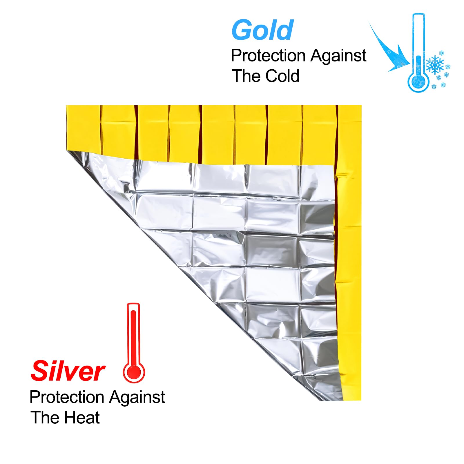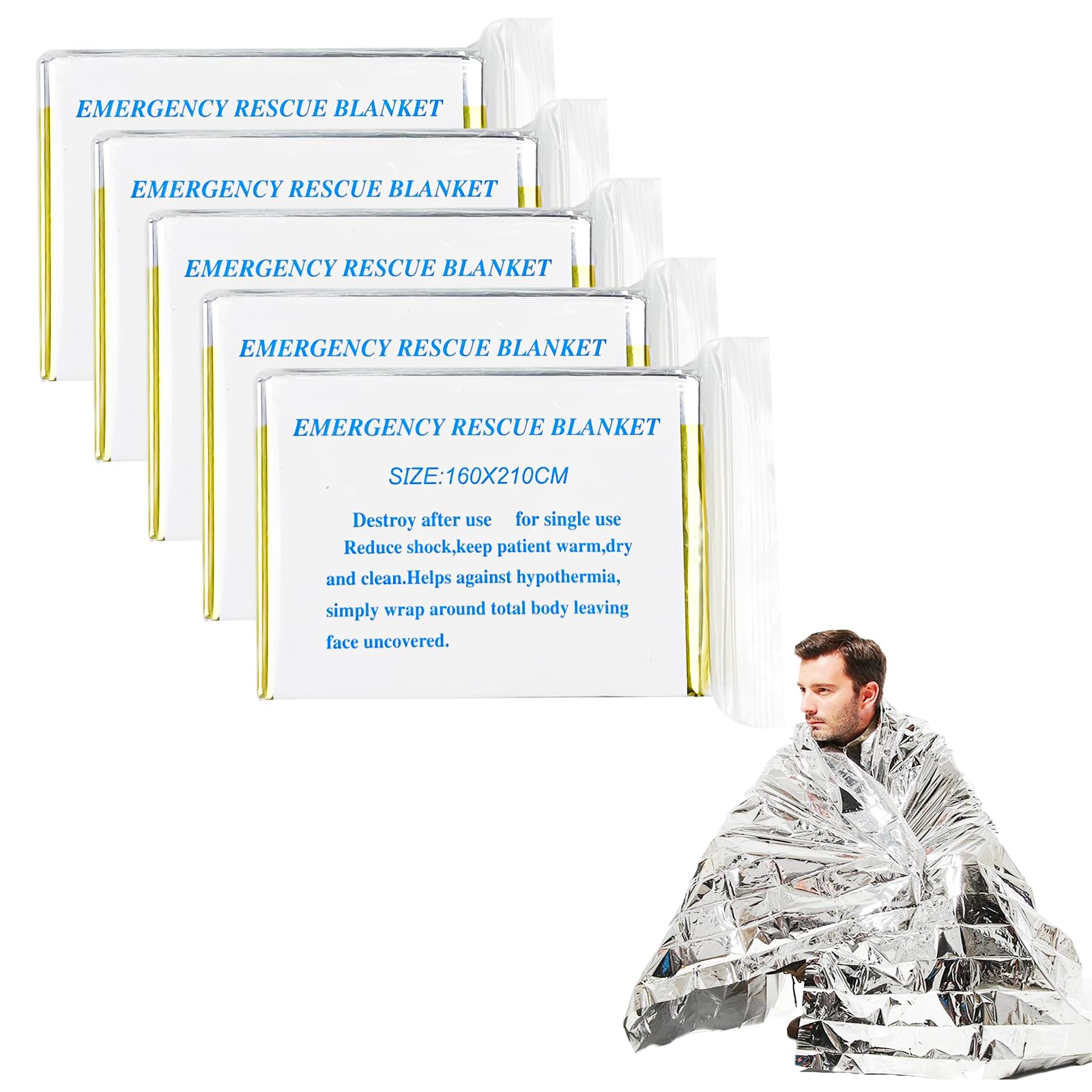 • 【Cantidad del Producto】Recibirás 5 piezas de mantas de emergencia. Debido al diseño compacto y al peso ligero de la manta de emergencia, se puede guardar fácilmente en bolsas de emergencia y botiquines de primeros auxilios para estar mejor preparado para las emergencias.