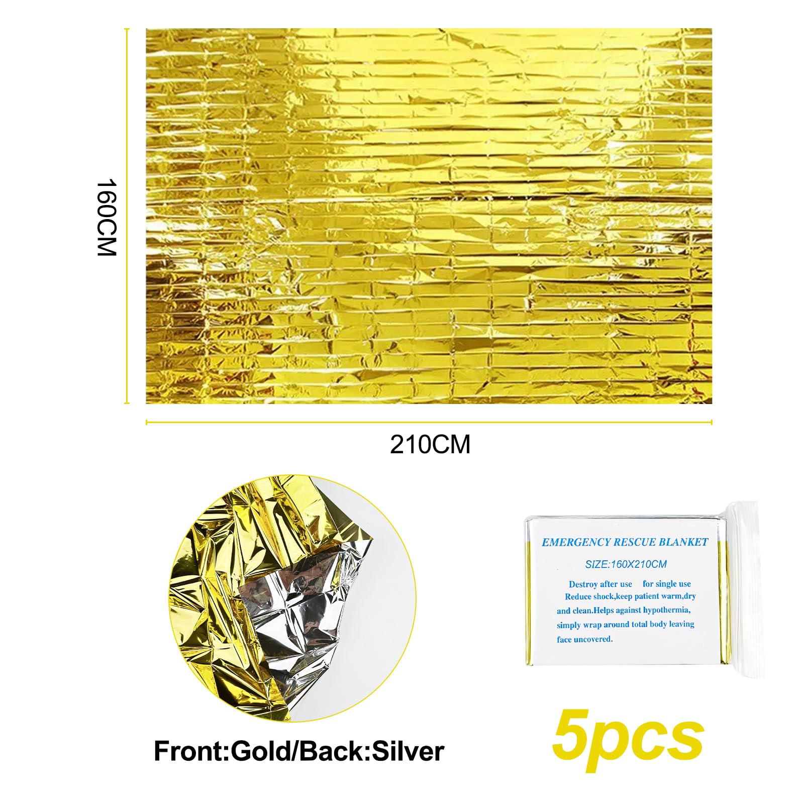 Traxenta 5 Piezas Manta Térmica Supervivencia, Mantas Térmicas de Emergencia Oro Plata, Botiquin Manta para Coche, Camping, Montaña Senderismo, Mochila, Fria, Aislante Primeros Auxilios 160 x 210cm