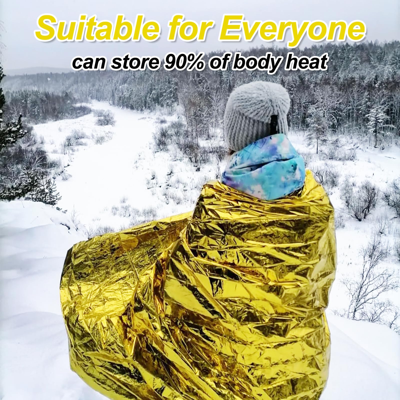 • 【Compacto y Portátil】Cada Mantas Térmicas de Emergencia está doblada, empaquetada y sellada individualmente, no ocupa mucho espacio y se puede llevar fácilmente a donde quiera que vaya.