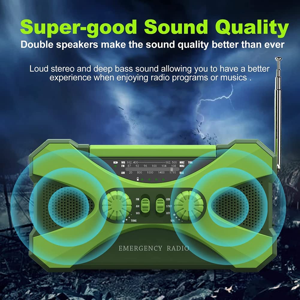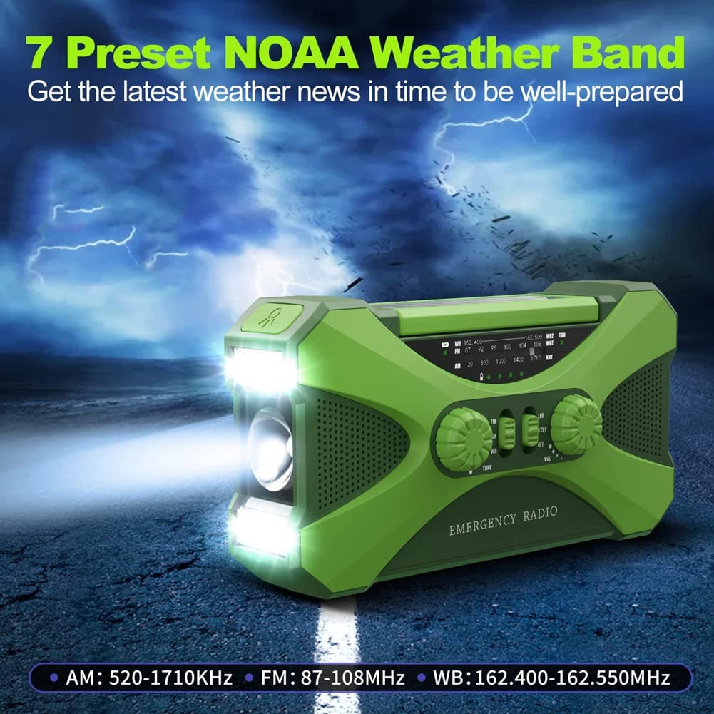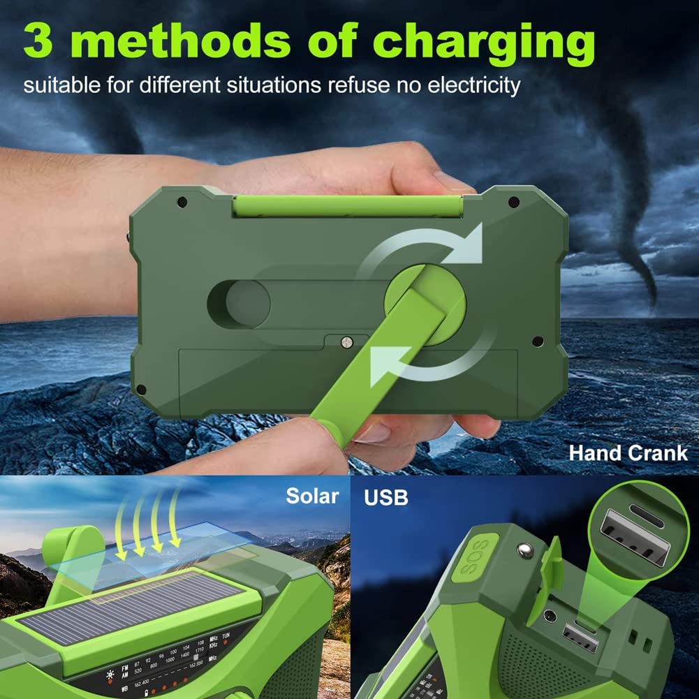 Bamberg Radio de Emergencia de 10000MAh, Radio de Manivela Solar, Radio PortáTil con Cargador de TeléFono, Linterna LED Verde