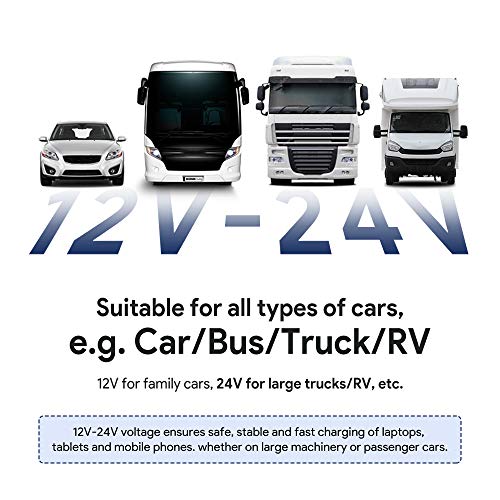 - Especificaciones: Entrada de voltaje: 12V-24V DC (9V-32V DC MAX),12A MAX, Salida: 20V5A 20V4.5A 20V3.25A 20V2.25A 100W MAX. Longitud del cable: 2,6 m. (norma de seguridad aprobada UL 1185). HKY Adaptador de Corriente Pequeño volumen, aerodinámico, sellado completo, portabilidad, rendimiento de alto coste, gran fiabilidad, unión por ultrasonidos