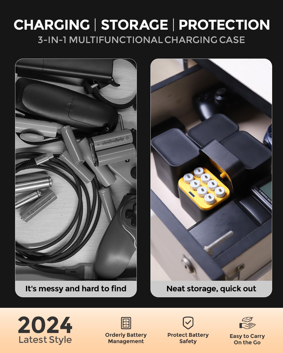• 【Lo que ofrecemos】8 pilas recargables de litio iMuto AA, 1 cargador de batería LED AA de 8 ranuras, 1 cable USB tipo C.