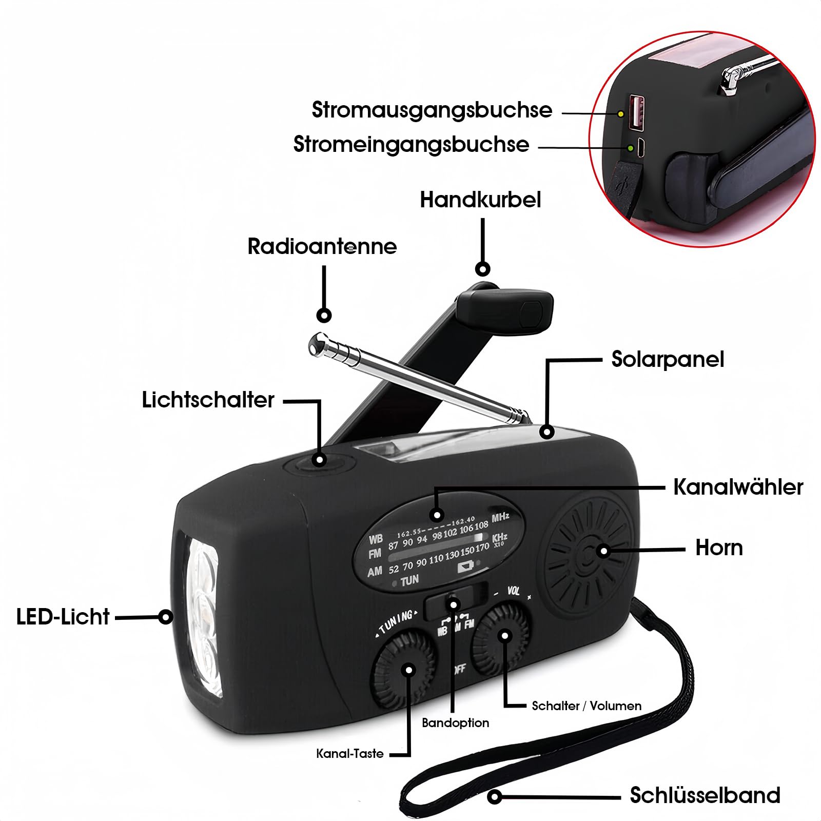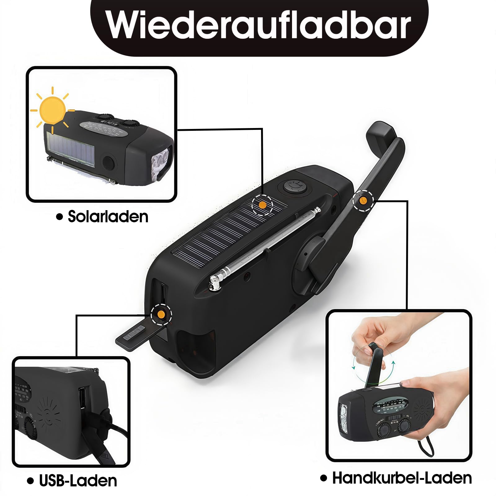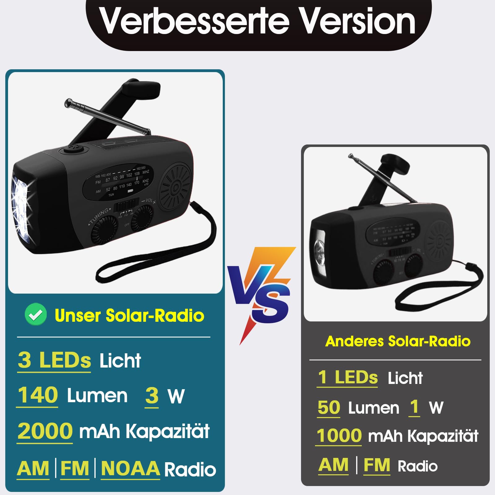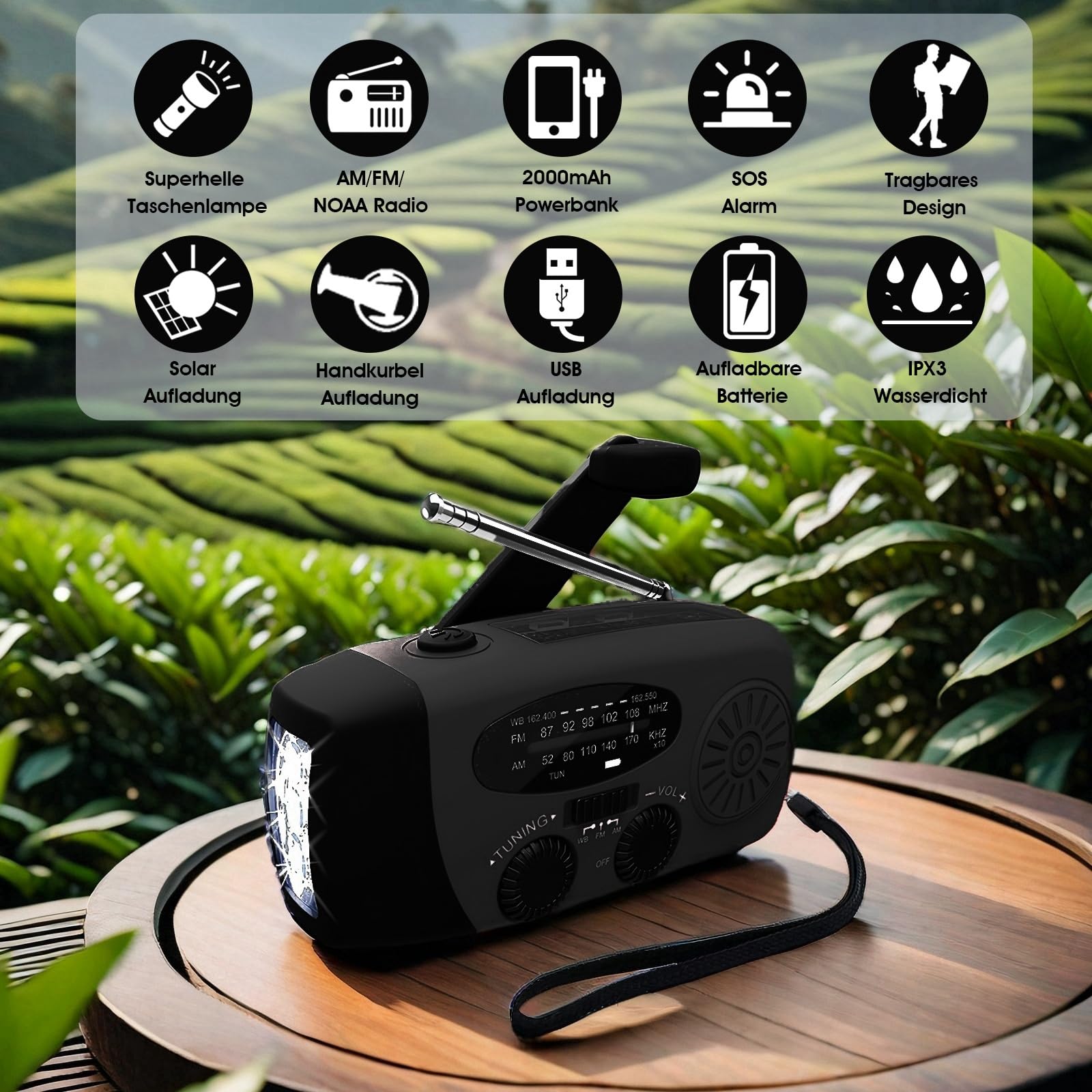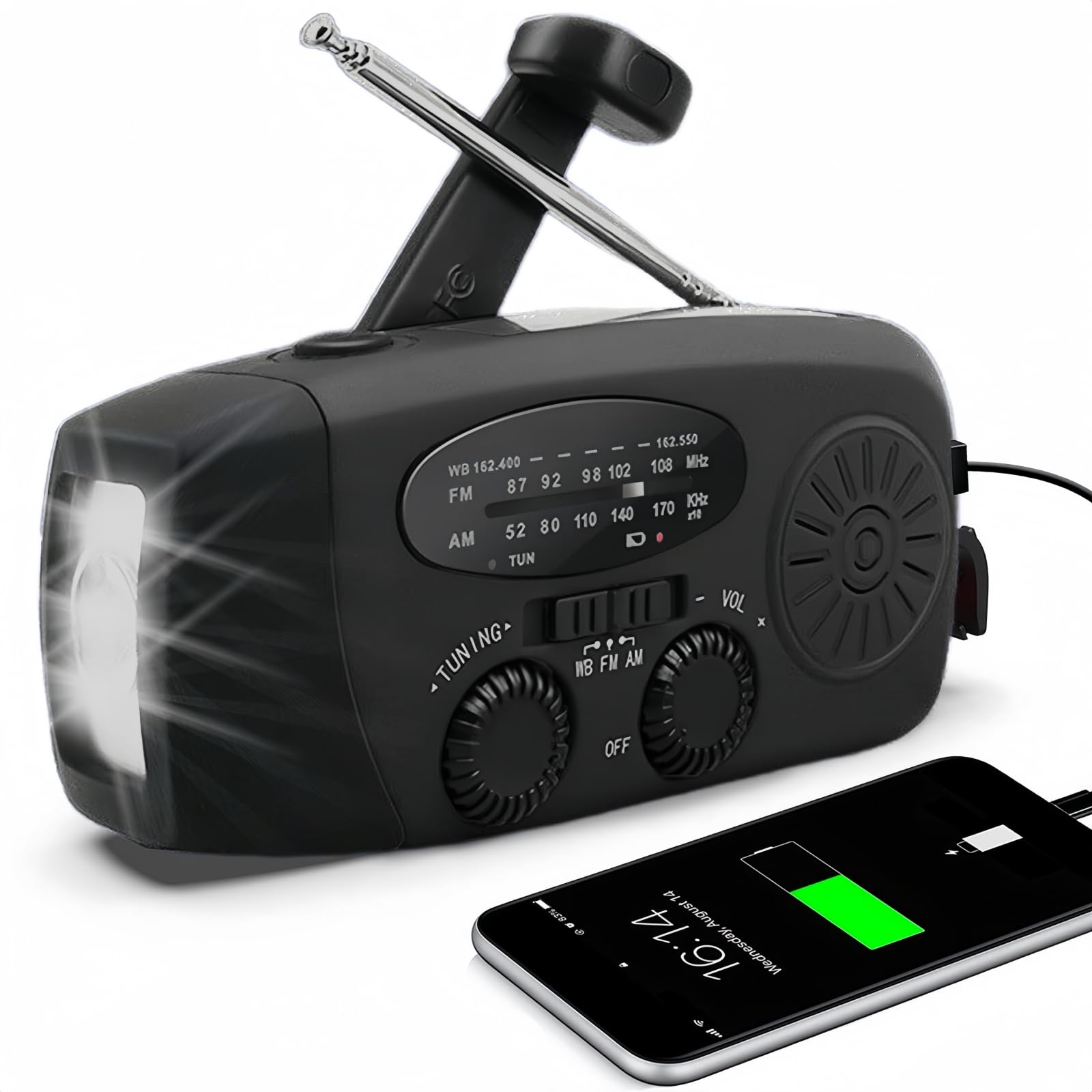 - 【Recargable】Sin electricidad? No te preocupes. Gracias a sus tres métodos de carga, la radio recargable está lista para usar en cualquier momento. La batería de 2000 mAh se puede cargar a través de un cable USB, un panel solar o una manivela. Vamos, póngalo en su mochila y haga un viaje agradable, o considérelo como el mejor regalo para sus padres mayores!