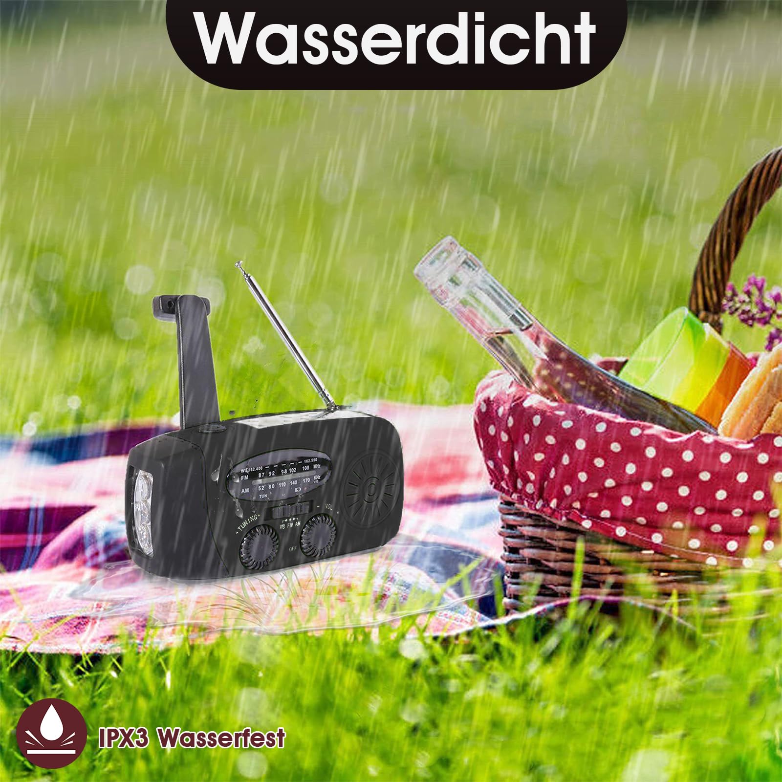 - Portátil e impermeable: el tamaño de esta radio de manivela es de 13 x 6 x 4,5 cm (largo x ancho x alto). Su tamaño es similar al de un teléfono móvil y se puede guardar fácilmente en tu mochila. Además, esta radio solar es resistente al agua IPX3 y puede soportar incluso las condiciones climáticas lluviosas más duras, lo que le permite divertirse en cualquier momento y en cualquier lugar.