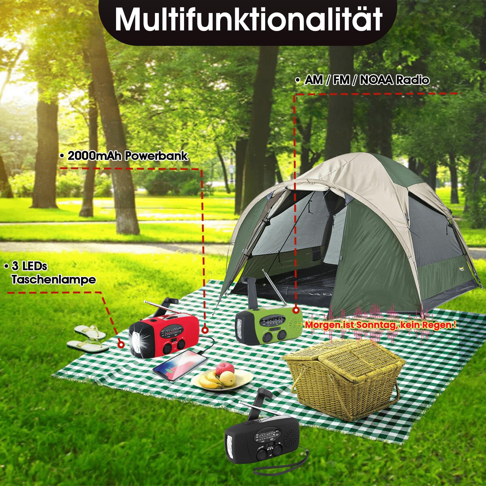 - Banco de energía de emergencia 3 en 1: no es solo una radio y una linterna, sino también un banco de energía indispensable para el teléfono móvil. La batería incorporada de 2000 mAh puede cargar su teléfono inteligente y otros dispositivos electrónicos pequeños. Es ampliamente utilizado en cortes de energía en interiores, emergencias al aire libre, senderismo, camping, mercados nocturnos y otras situaciones.