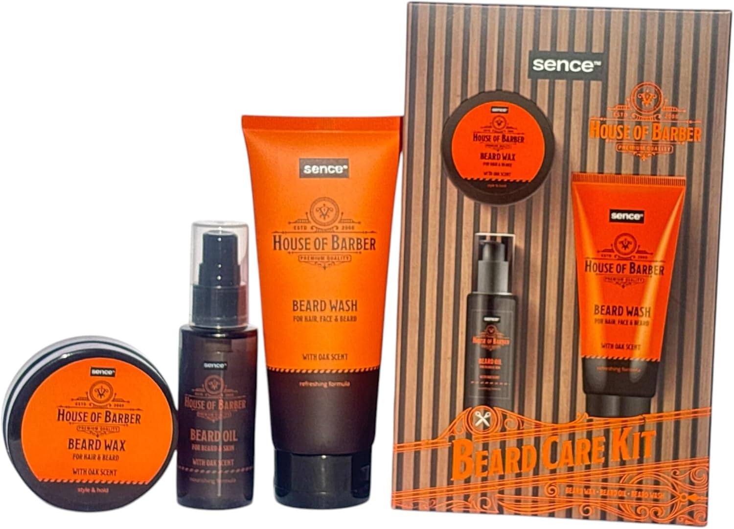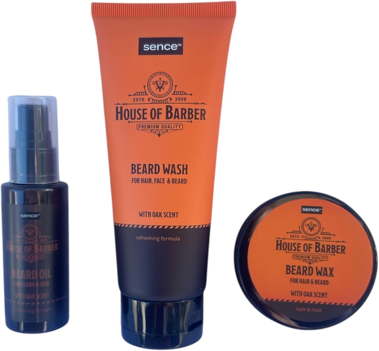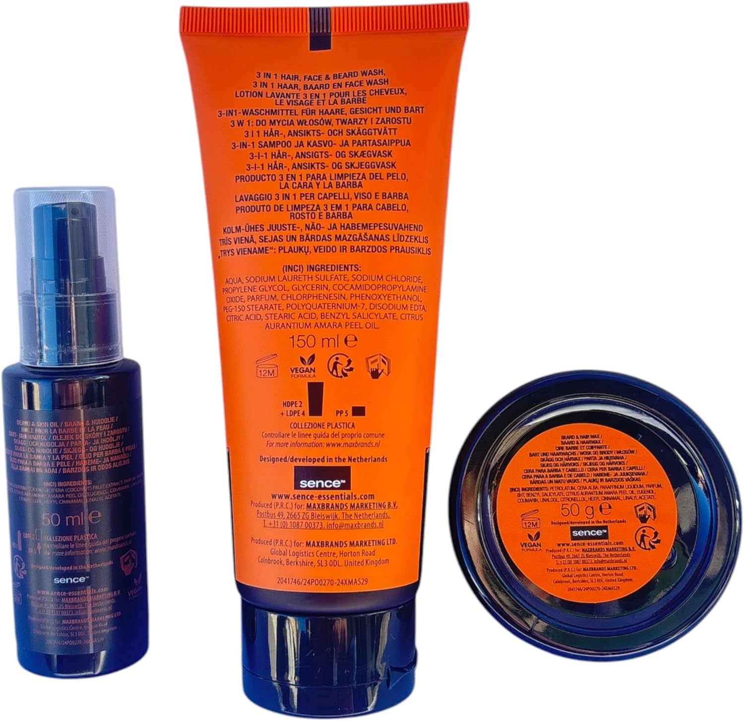 Looking for a complete beard care kit with a vintage style? This Sence Vintage Beard Care Kit is ideal for men who want to keep their beard looking impeccable, well-groomed and nourished. Perfect for both daily use and as a gift for someone special, this kit contains three essential products: a shampoo, an oil and a beard and hair wax. Key features of the Sence Beard Care Kit: Beard, Face and Hair Shampoo (150ml): - This multi-purpose beard shampoo is specially formulated to gently and effectively cleanse. Perfect for removing impurities without drying out your skin or beard hair. - 3-in-1 formula: ideal for beard, face and hair, saving time and space in your grooming routine. - Essential ingredients such as Sodium Laureth Sulfate and Propylene Glycol, which ensure a deep and refreshing cleanse. Beard and Skin Oil (50ml): - This beard oil is a perfect moisturizer that softens and nourishes your beard hair and the skin underneath. - Natural ingredients: contains coconut extract and citrus peel oil that help keep your beard soft and freshly scented. - Quick and easy application: just a few drops are needed to deeply hydrate, achieving a manageable and shiny beard. Beard and hair wax (50 g): - The styling wax provides a light hold that allows you to style your beard and hair without leaving them stiff. - Beeswax (cera alba) and petrolatum that guarantee a natural, flexible and controlled texture. - Ideal for achieving a polished and elegant finish that maintains its style throughout the day. Benefits of the Sence beard care kit: - Vintage style and high quality: a sophisticated and elegant design that adds a classic touch to your grooming routine. - Perfect gift for men: this beard kit is ideal to give on special occasions such as birthdays, Christmas or anniversaries. - All in one: covers all the cleaning, moisturizing and styling needs for beard and hair care in a single kit. Instructions for use: - Apply the shampoo to your beard and rinse well with warm water. - Massage a few drops of oil into beard and skin. - Use wax to style and shape desired, applying to beard or hair as needed. Specifications: - External use only: avoid contact with eyes. - Not suitable for sensitive skin. This Sence Vintage Beard Care beard kit is the perfect complement to quality men's grooming, ensuring a clean, soft and stylish beard. Get yours and take your beard care to the next level!