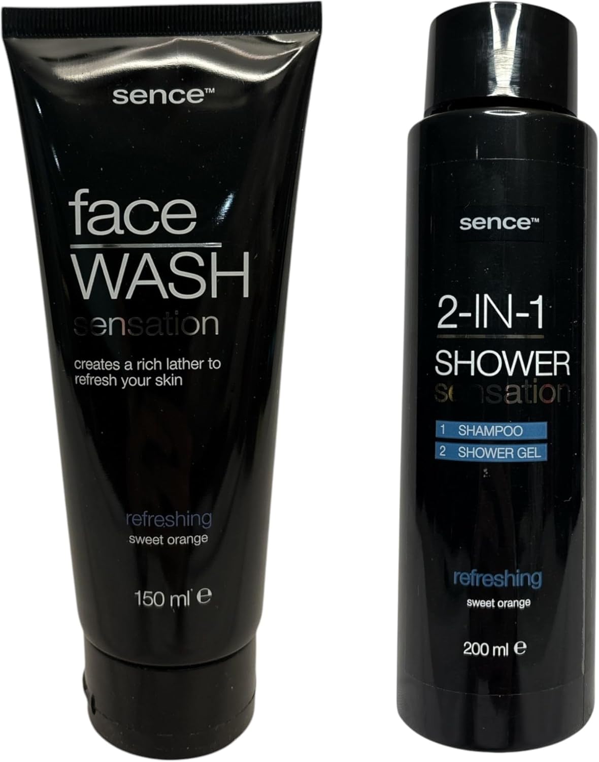 Daily Care Set with Sweet Orange Scent - Shower Gel and Shampoo 2 in 1 (200 ml) + Gentle Facial Cleanser (150 ml) - 2 Vegan Pieces