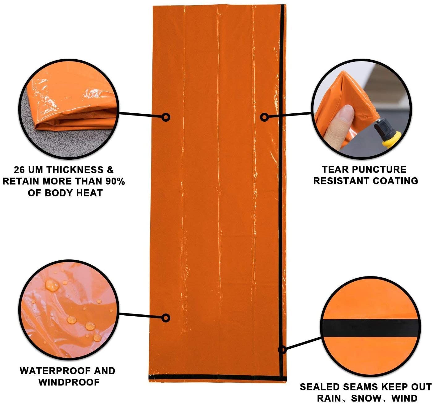 - 【Multiusos para Exteriores】Una parte esencial de cualquier kit de supervivencia, el exterior naranja brillante se puede utilizar como dispositivo de señalización. Equipos de rescate lo pueden ver y localizar fácilmente debido al contraste de color contra la naturaleza. Se puede utilizar como manta de emergencia, saco de dormir, manta de picnic, un artículo esencial para escaladores, montañeros y caminantes.
