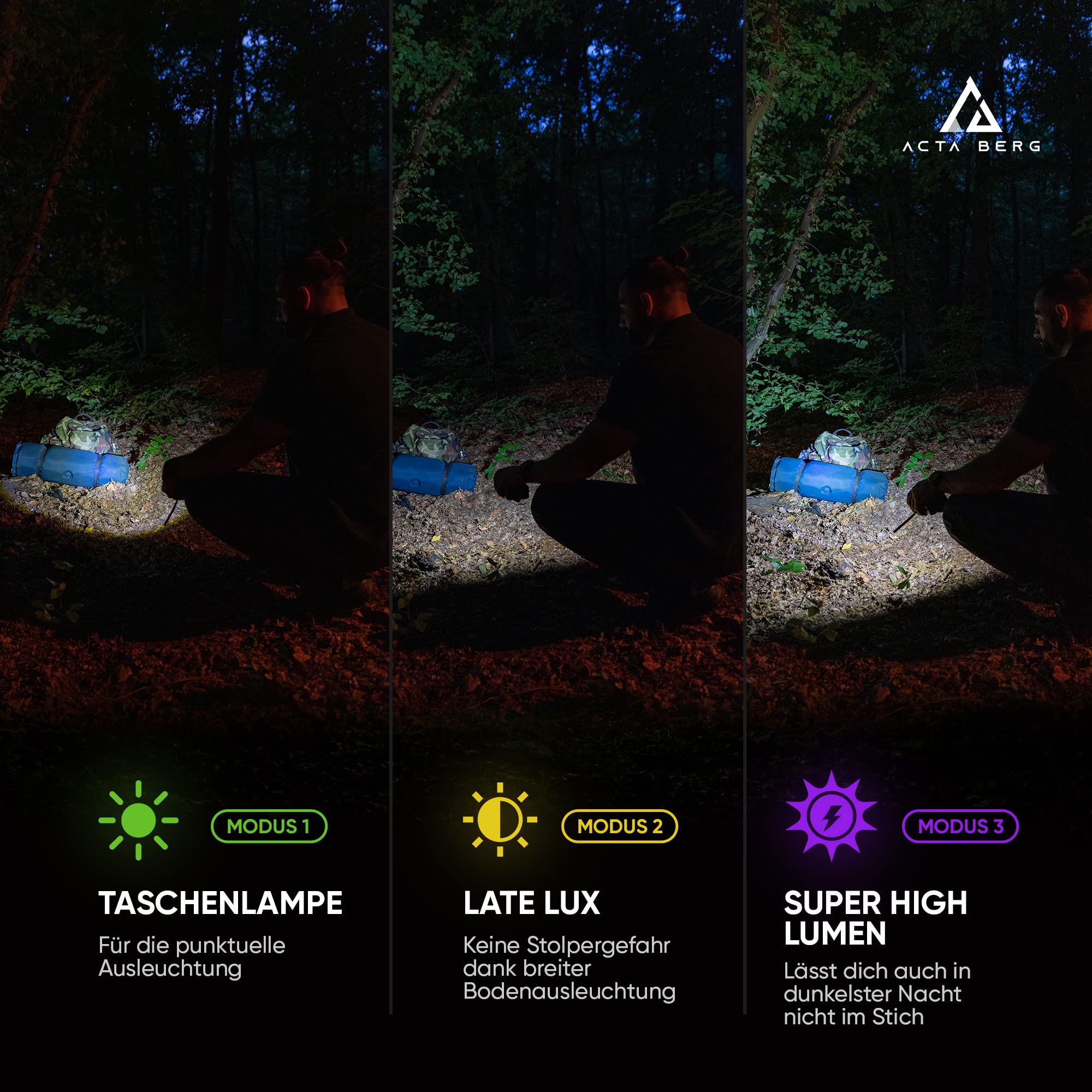 • Fácil de usar Así tu radio puede actuar como una linterna normal, en el modo Late-Lux se ilumina ampliamente el camino y reducir tu riesgo de tropiezo al mínimo, y en el modo Super High Lumen, deja brillar incluso la noche más oscura