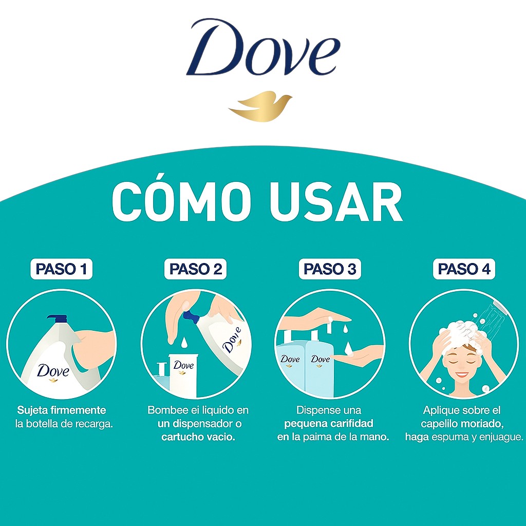 - Fórmula profesional Dove: enriquecida con nutrientes esenciales y agentes acondicionadores que ayudan a reparar el daño capilar.